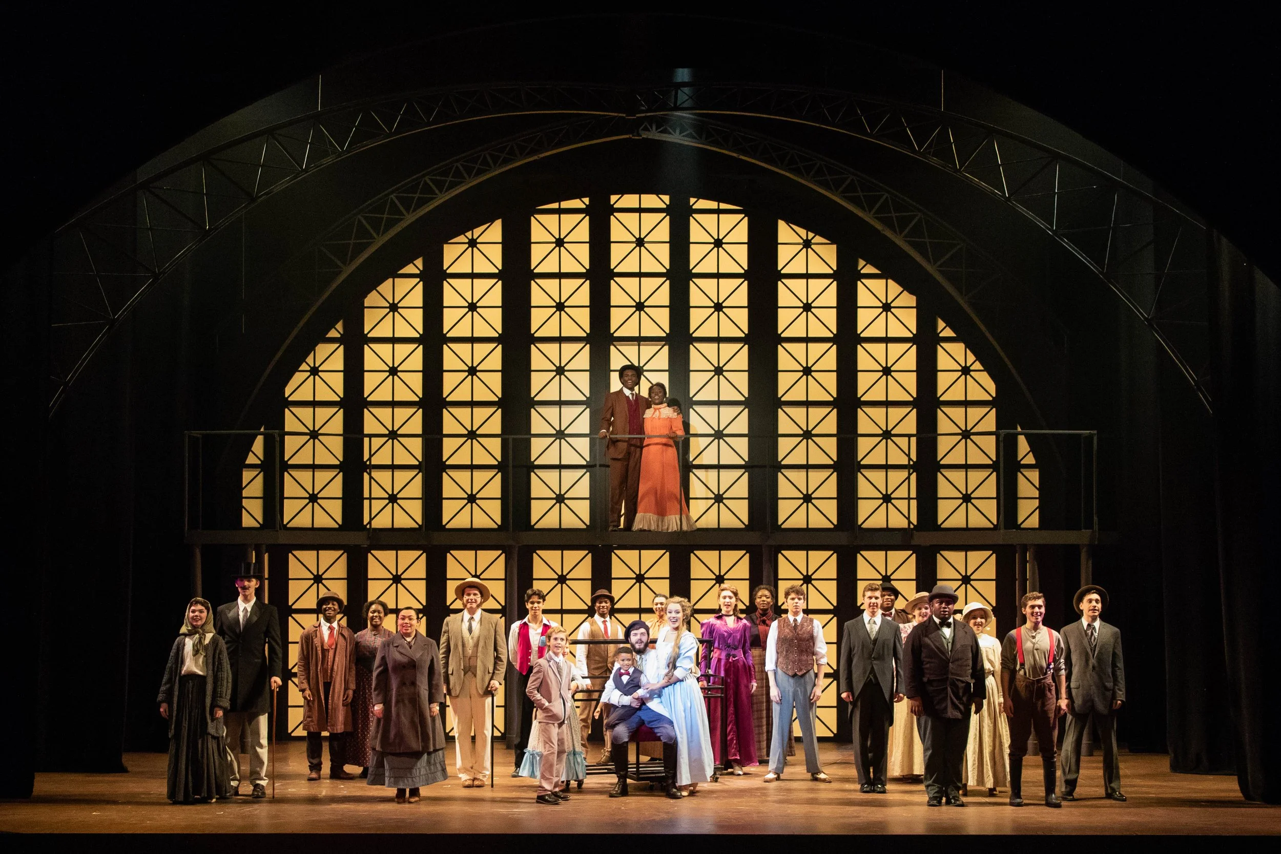 Ragtime follows three families in pre-WWI New York, from different socioeconomic and racial backgrounds and how the events of their time force them to change and grow. It shows American experiences from different groups. Ragtime music is all about time; rag music never stops and is always flowing. Thematically, the story mirrors that idea. We, as people, never stop to look at our surroundings until the unthinkable happens. Only then does time and the music stops. The design reflects two different buildings of the era, Ellis Island and Penn Station. Both places represent travel, and they are a place where class didn’t matter. We also wanted to further incorporate the theme of time and movement, so there was a revolve that helped maintain the motion throughout the play.